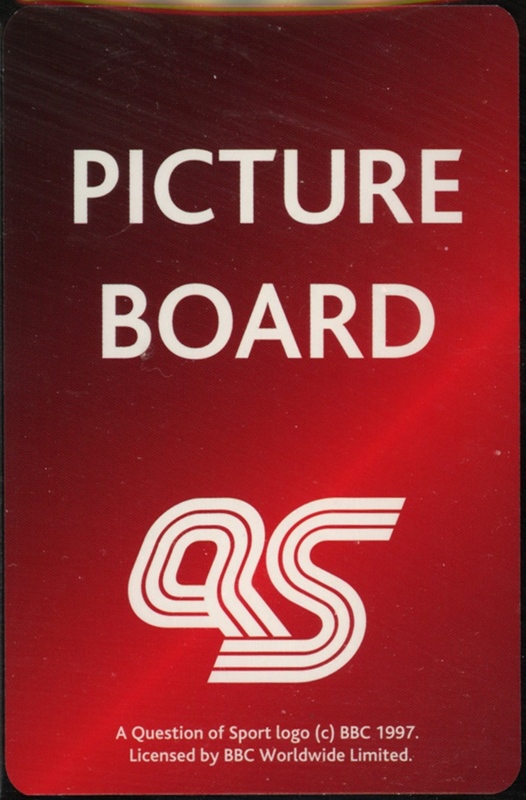 A Question of Sport, a popular British sports quiz show, has spawned a number of board game editions over the years. It can be very challenging to identify which year specific cards were issued as many do not include a copyright date at all and others, like this one, include a copyright date for the logo and not the cards themselves. These rounded corner, red cards are from the 2007 Marks & Spencer/Toy Brokers Ltd. edition of the board game, with 100 subjects in the Picture Board category covering a variety of sports. These cards are unnumbered and include the following nine golf subjects plus one soccer player pictured golfing: